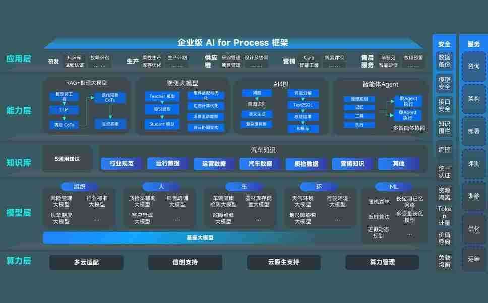 EBPAY问学智车解决方案是一套基于AI技术的汽车行业智能化系统,,覆盖从底层算力到顶层AI应用的全栈方案。。。方案由算力层、、、、模型层和应用层组成:算力层,,方案支持多种一体机配置,,具备云端灵活部署、、、、多云适配以及动态优化计算资源的能力;模型层,,,,EBPAY问学平台版提供了企业级AI应用一站式构建与管理平台,,支持基于后训练强化技术的汽车企业专属模型的训练、、评测和运营;应用层,,,EBPAY问学DeepSeek版提供包括超级员工、、、智能招采、、、智能营销、、、、智能客服、、、AI for BI等一系列解决方案,,,,可助力汽车行业实现数字化转型,,让管理更智能、、响应更敏捷。。。。
